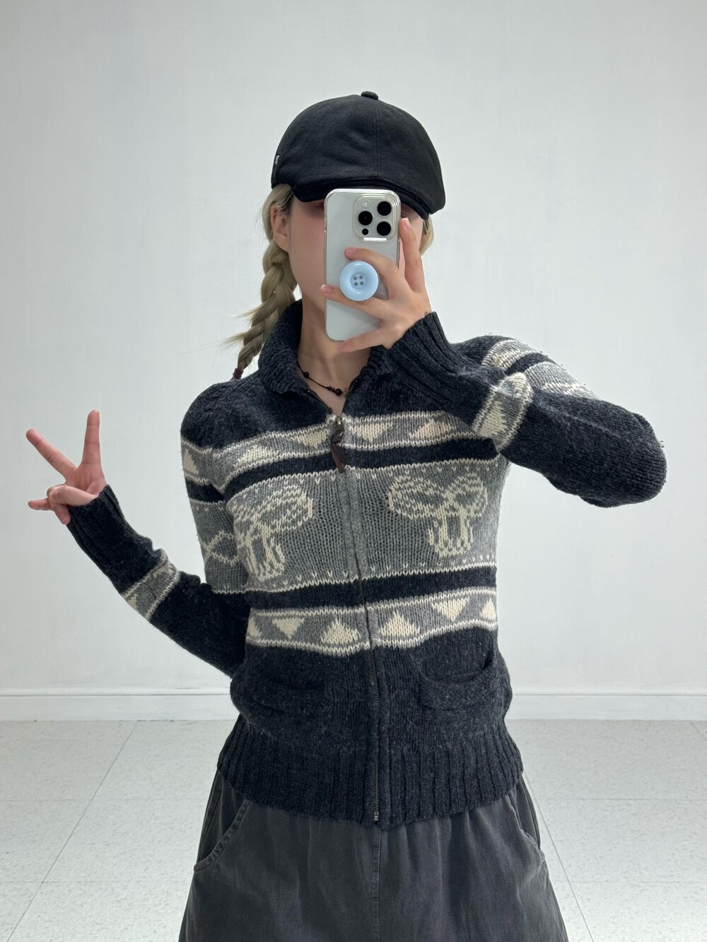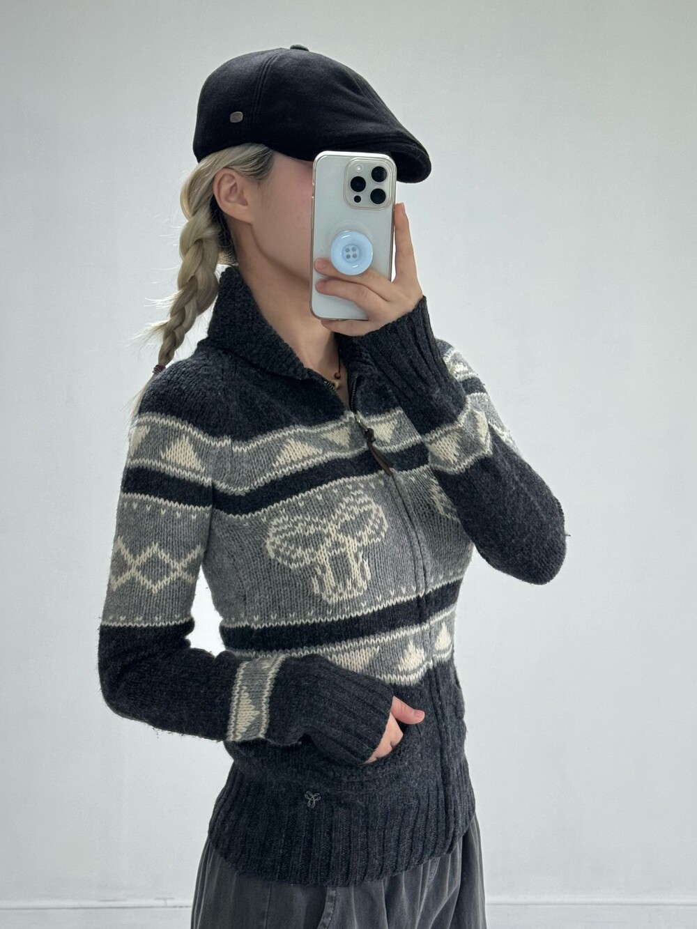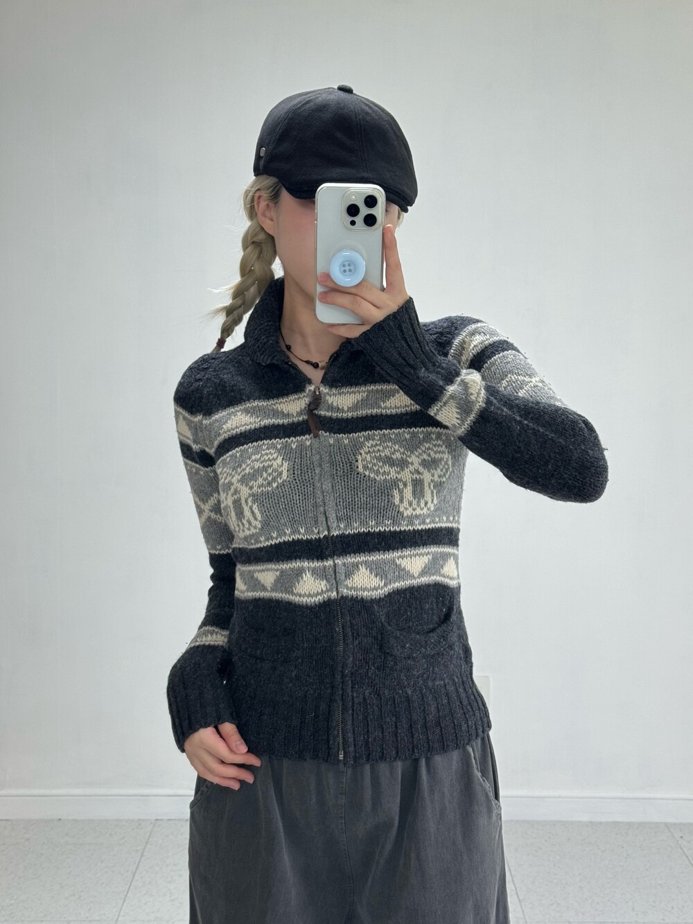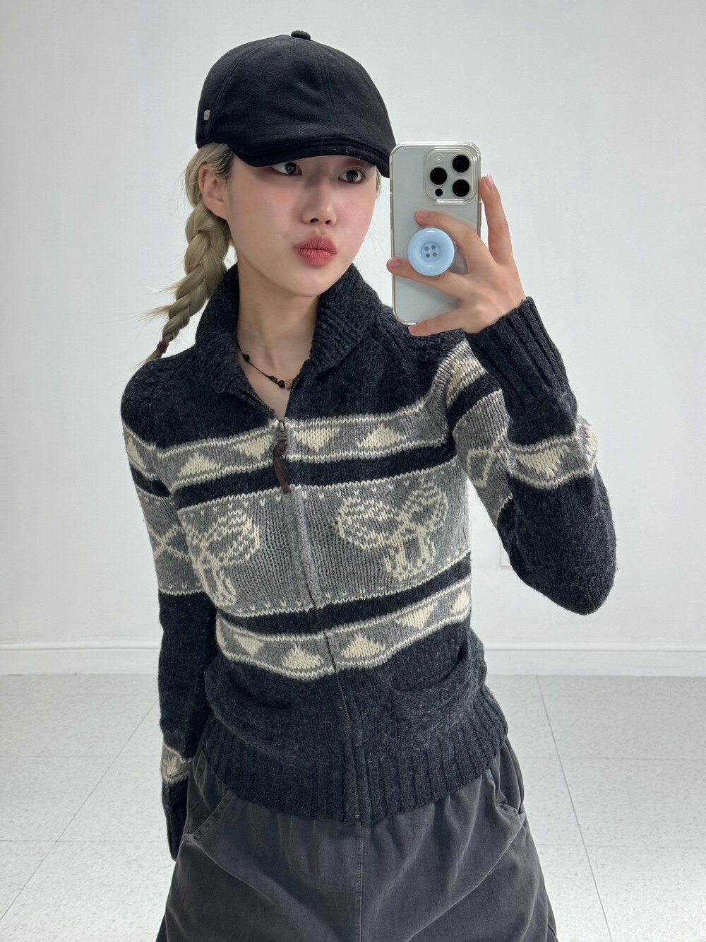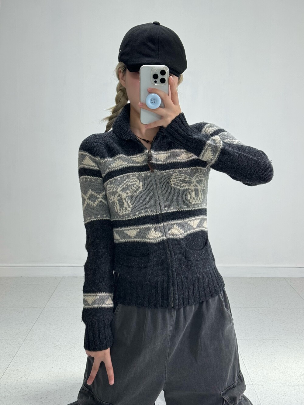 •제가 항상 극찬하는 노르딕 니트집업이에요! 챠콜컬러라 부담스럽지도 않고 도톰한 울 원단이지만 부해보이지 않고 슬림하게 상체를 잡아주는 아주 멋스러운 강추템 🖤