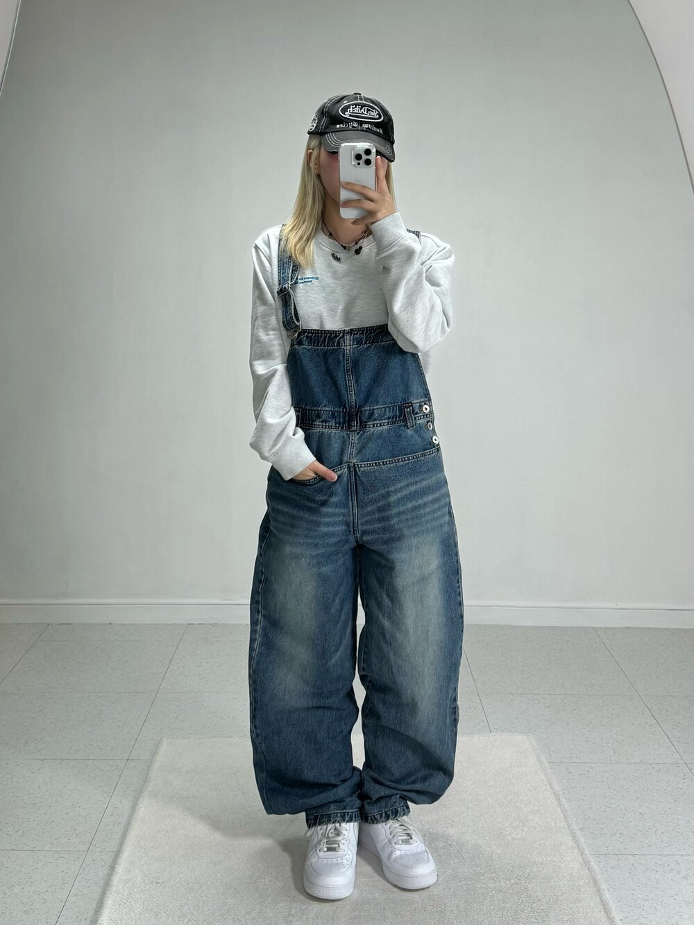 •베이직한 디자인의 오버롤 이에요! 앞뒤로 살짝씩 워싱이 들어가있고 요고는 밑단이 넓지 않아서 신발위로 묵직하게 밑단이 안착된답니다ㅎㅎ 그래서 키작은분들도 충분히 입으실 수 있어요! 150-160초반분들께 추천드리는 제품이랍니닷 ㅎㅎ